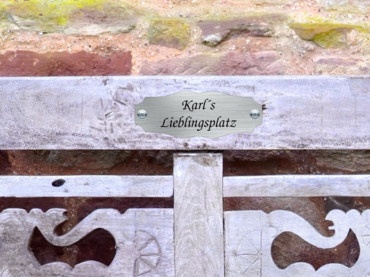 Personalisiertes Schild für Gartenbank mit Gravur | Namensschild für Hochzeitsbank & Erinnerungsbank