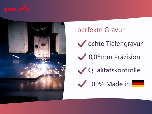 Präzise Lasergravur: Dein Wunschtext wird nicht nur gedruckt, sondern tief und dauerhaft in das Material eingraviert. Das Ergebnis ist eine kontrastreiche, schwarze Beschriftung, die niemals verblasst.